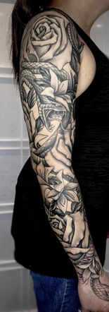 Rose got her start tattooing in San Diego in 2011 after earning her BA in art and design from Columbia College Chicago. Her career kicked into high gear when she landed a position at Omkara Tattoo in Philadelphia in 2019, studying under legendary Shifu Nhâ. She moved to the Seattle area in 2023 and specializes in fine-line, black and grey with smooth gradient shading, and large-scale pieces. Her focus is on floral, animals, nature scenes, realism, and Asian-style.